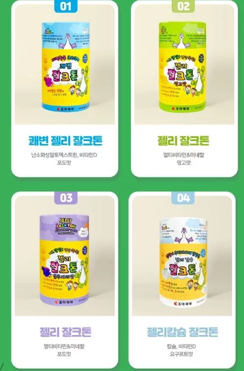 그 중에 젤리는 애들이 거부감을 갖지 않고 맛있게 먹을 수 있어 잘크톤 제품 중에서도 인기가 많은편인데요, 위에서 종류를 알려드렸는데 다음 4가지가 있습니다.
