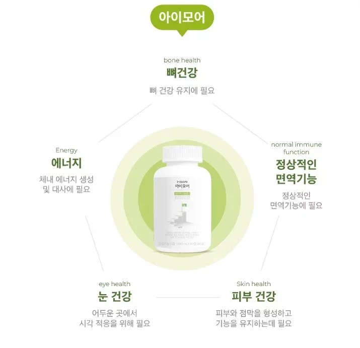 위 사진과 같이 뼈건강, 면역기능, 에너지, 눈건강, 피부건강을 종합적으로 챙길 수 있는 종합영양제 역할을 하면서도 키에 크는 성분들도 같이 가지고 있습니다.